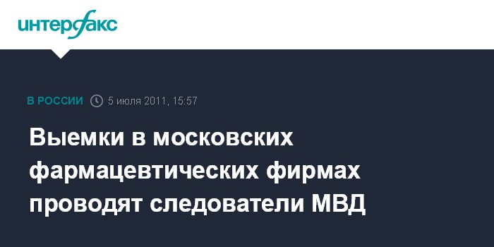 Москва. 5 июля. INTERFAX.RU - Выемку документов в ряде крупных фармацевтических компаний Москвы проводят сотрудники следственного департамента МВД РФ, сообщили в пресс-службе департамента.