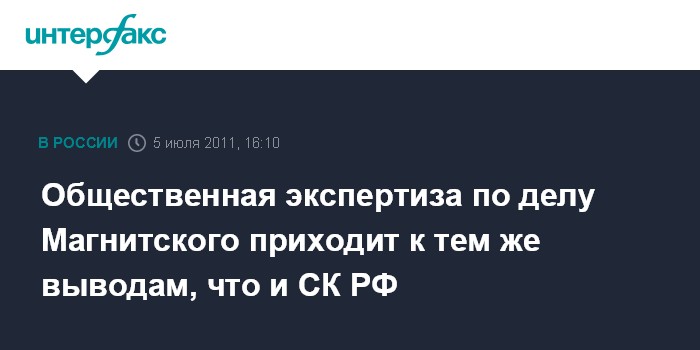 Общественная экспертиза по делу Магнитского приходит к тем же выводам, что и СК РФ