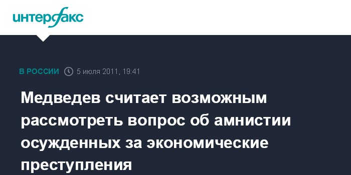 Медведев считает возможным рассмотреть вопрос об амнистии осужденных за экономические преступления