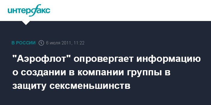 Москва. 6 июля. INTERFAX.RU - В "Аэрофлоте" не создавали группу борцов за права сексменьшинств, заявили в компании.