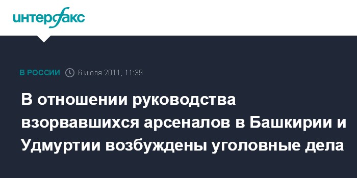 В отношении руководства взорвавшихся арсеналов в Башкирии и Удмуртии возбуждены уголовные дела