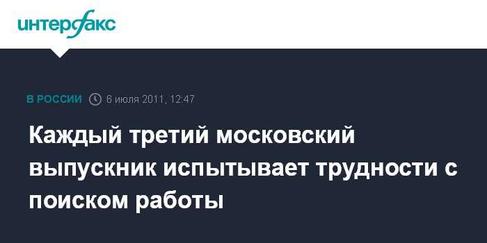 Москва. 6 июля. INTERFAX.RU - Каждый третий выпускник московских вузов (35%) испытывает сложности с трудоустройством, при этом многие из них винят в этом скорее объективные обстоятельства (работодатели не берут без опыта работы), нежели ВУЗ (16%) или свое халатное отношение к учебе (5%).