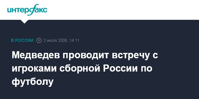 Москва. 2 июля. INTERFAX.RU - Президент РФ Дмитрий Медведев в замке Майендорф в подмосковной Барвихе проводит встречу со сборной России по футболу, завоевавшей бронзу на завершившемся чемпионате Европы.