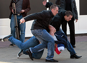 Газ минских "несогласных" не остановил, и восстановлением правопорядка пришлось заняться милиции. На Привокзальной площади они работали в гражданском, выхватывая протестующих по одиночке и утаскивая их в автобусы.