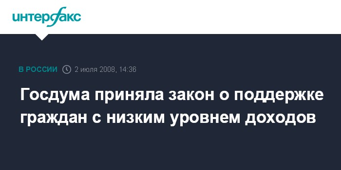 Госдума приняла закон о поддержке граждан с низким уровнем доходов