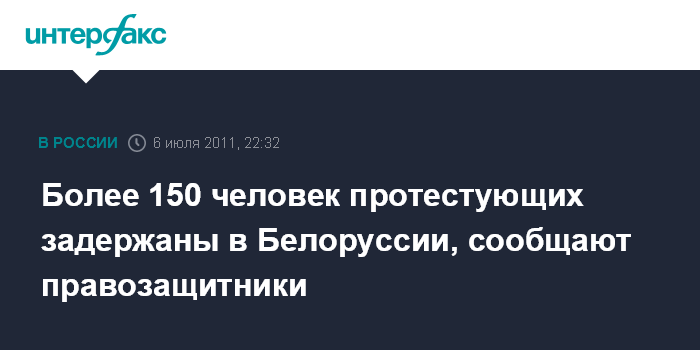 Минск. 6 июля. ИНТЕРФАКС-ЗАПАД - В Белоруссии за участие в "молчаливой" акции протеста в среду были задержаны более 150 человек, сообщает белорусский правозащитный центр "Весна".