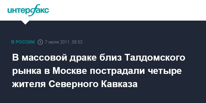 В массовой драке близ Талдомского рынка в Москве пострадали четыре жителя Северного Кавказа