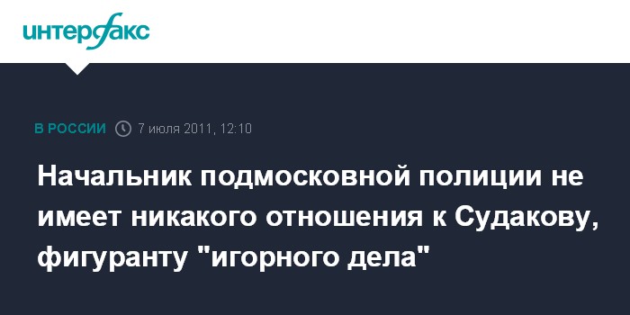 "Начальник главка генерал-полковник Николай Головкин к гражданину Олегу Судакову никакого отношения не имеет, о чем он свидетельствовал на прошедшей неделе в Следственном комитете РФ", - заявили "Интерфаксу" в управлении информации и общественных связей ГУ МВД России по Московской области.