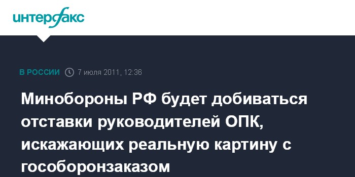 Минобороны РФ будет добиваться отставки руководителей ОПК, искажающих реальную картину с гособоронзаказом
