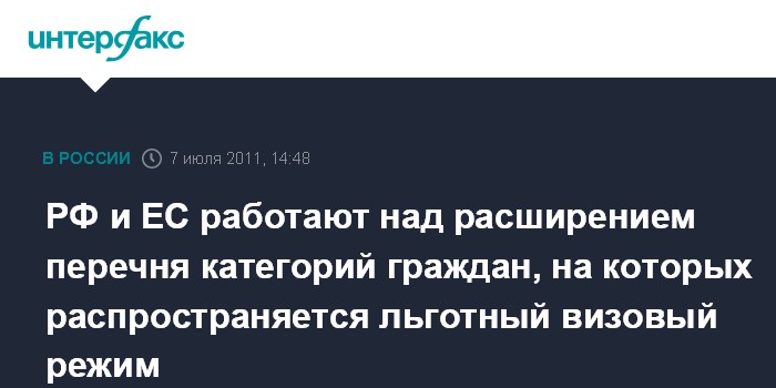Москва. 7 июля. INTERFAX.RU - Россия рассчитывает до конца года согласовать с ЕС расширенный перечень граждан, на которых будет распространяться расширенный визовый режим, заявил министр иностранных дел России Сергей Лавров.