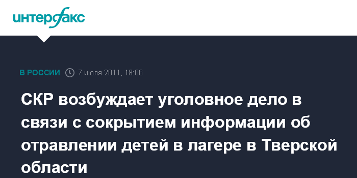СКР возбуждает уголовное дело в связи с сокрытием информации об отравлении детей в лагере в Тверской области
