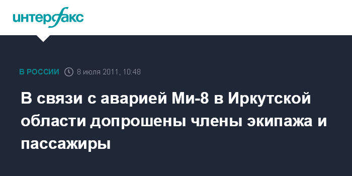 В связи с аварией Ми-8 в Иркутской области допрошены члены экипажа и пассажиры