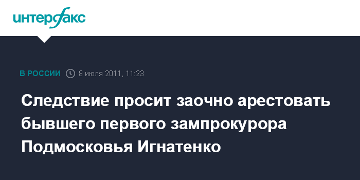 Следствие просит заочно арестовать бывшего первого зампрокурора Подмосковья Игнатенко
