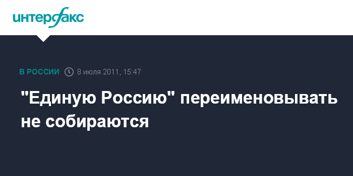 Москва. 8 июля. INTERFAX.RU - "Единая Россия" не собирается менять свое название в связи с предстоящими парламентскими выборами, заявляют в руководстве партии.