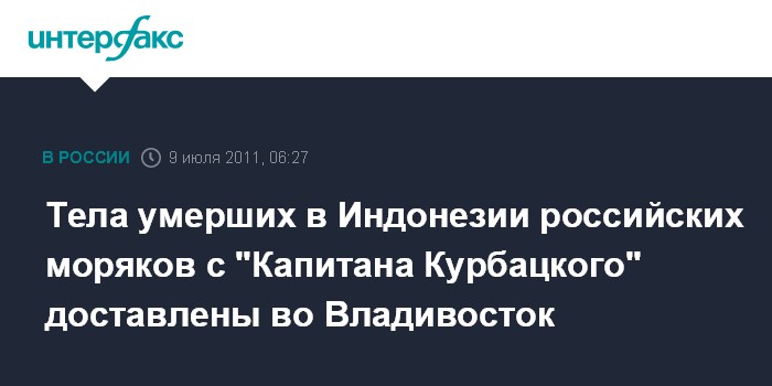 Тела умерших в Индонезии российских моряков с "Капитана Курбацкого" доставлены во Владивосток