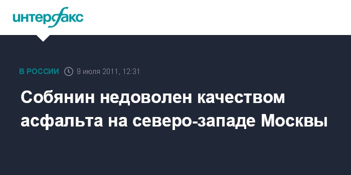 Собянин недоволен качеством асфальта на северо-западе Москвы