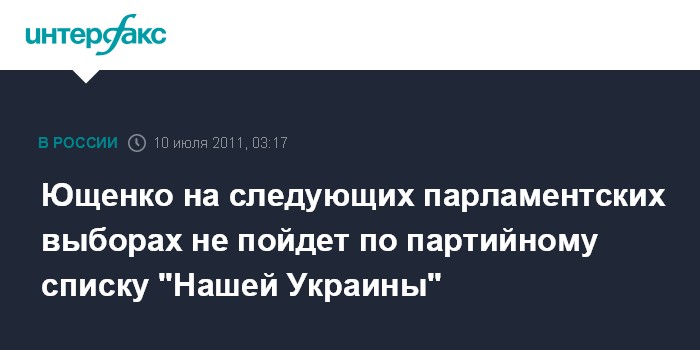 Ющенко на следующих парламентских выборах не пойдет по партийному списку "Нашей Украины"