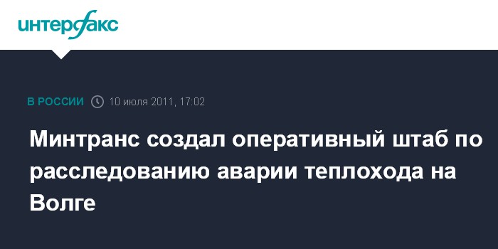 Минтранс создал оперативный штаб по расследованию аварии теплохода на Волге