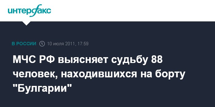 МЧС РФ выясняет судьбу 88 человек, находившихся на борту "Булгарии"