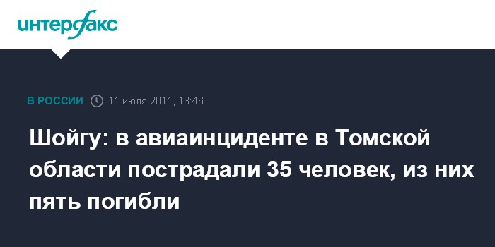 Шойгу: в авиаинциденте в Томской области пострадали 35 человек, из них пять погибли