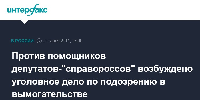 Против помощников депутатов-"справороссов" возбуждено уголовное дело по подозрению в вымогательстве