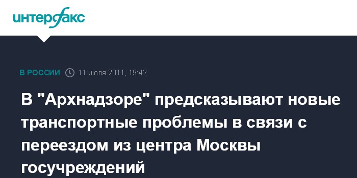 Москва. 11 июля. INTERFAX.RU - Общественное движение "Архнадзор" опасается нового транспортного коллапса при переезде федеральных учреждений на юго-запад Москвы.