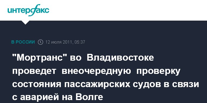 "Мортранс" во Владивостоке проведет внеочередную проверку состояния пассажирских судов в связи с аварией на Волге
