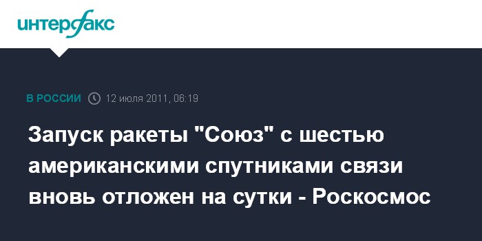 Запуск ракеты "Союз" с шестью американскими спутниками связи вновь отложен на сутки - Роскосмос