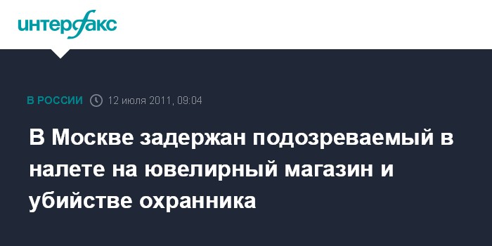 В Москве задержан подозреваемый в налете на ювелирный магазин и убийстве охранника
