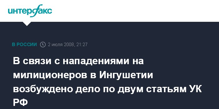 В связи с нападениями на милиционеров в Ингушетии возбуждено дело по двум статьям УК РФ