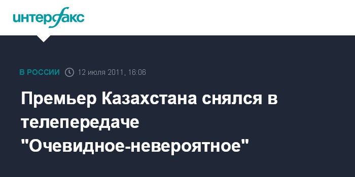 Премьер Казахстана снялся в телепередаче "Очевидное-невероятное"