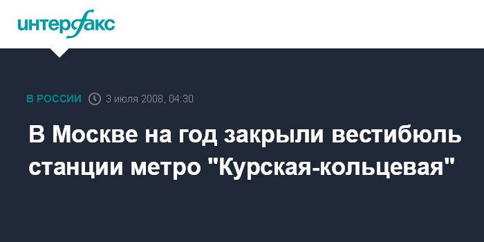 Москва. 3 июля. ИНТЕРФАКС-МОСКВА - Вестибюль станции московского метро "Курская" кольцевой линии закрыли в четверг сроком на 11 месяцев, сообщили "Интерфаксу" в пресс-службе столичного метрополитена.
