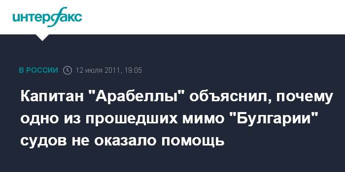 Капитан "Арабеллы" объяснил, почему одно из прошедших мимо "Булгарии" судов не оказало помощь