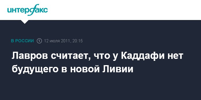 Москва. 12 июля. INTERFAX.RU - В Москве не видят будущего для Муамара Каддафи в Ливии.