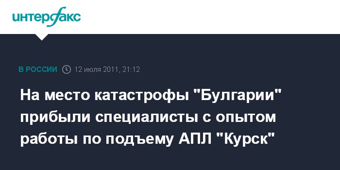 Москва. 12 июля. INTERFAX.RU - Специалисты 40 НИИ Минобороны РФ прибыли на место катастрофы судна "Булгария", чтобы подготовить расчетные данные для подъема затонувшего корабля, сообщил "Интерфаксу-АВН" во вторник официальный представитель управления пресс-службы и информации российского военного ведомства.