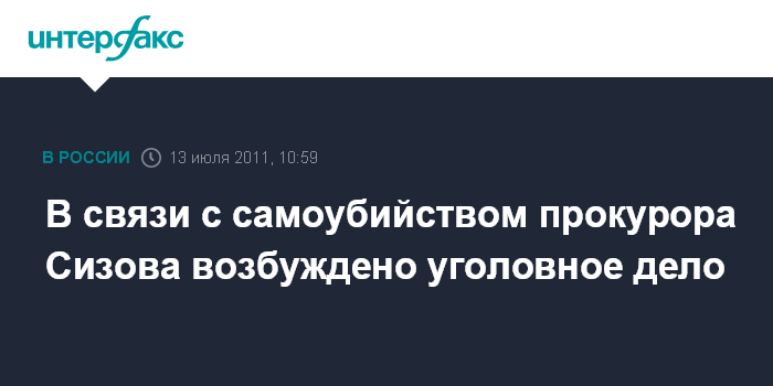 В связи с самоубийством прокурора Сизова возбуждено уголовное дело
