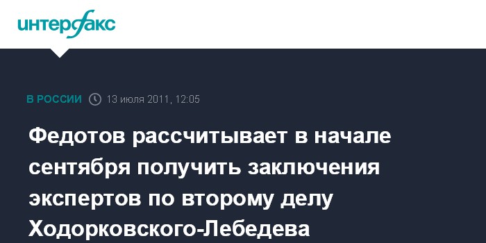 "Мы обратились к двум десяткам крупнейших экспертов в области российского уголовного права. Мы их попросили прислать заключение (по этому делу - ИФ) к началу сентября", - сказал Федотов на пресс-конференции в центральном офисе "Интерфакса" в среду.