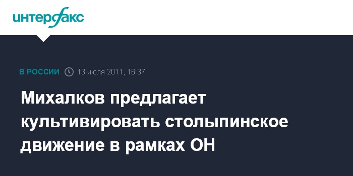 "Мне думается, может, я ошибаюсь, это все хорошо, что такие мероприятия (юбилей Столыпина - ИФ) проводятся, но будет жалко и непростительно, если на окончании этого юбилея закончатся мысли Столыпина. Мне думается, что, может быть, есть смысл подумать о том, чтоб возникло некое движение, не будем говорить партия, движение внутри Народного фронта", - заявил Михалков.