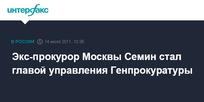 Москва. 14 июля. INTERFAX.RU - Бывший прокурор Москвы Юрий Семин назначен начальником управления по надзору за исполнением законодательства о противодействии коррупции Генеральной прокуратуры РФ, сообщила "Интерфаксу" официальный представитель ведомства Марина Гриднева.