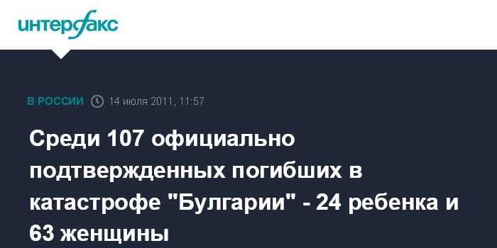 Среди 107 официально подтвержденных погибших в катастрофе "Булгарии" - 24 ребенка и 63 женщины