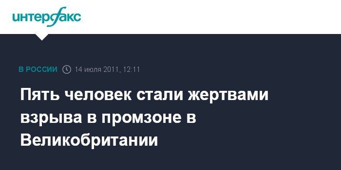 Лондон. 14 июля. ИНТЕРФАКС - По меньшей мере пять человек погибли и еще один получил тяжелые ранения в результате взрыва на территории промышленного комплекса в графстве Линкольншир на северо-востоке Великобритании, сообщает в четверг телеканал Sky News.