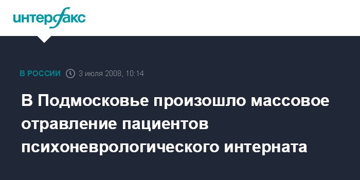 "В среду около 15:00 поступила информация от главврача интерната, который находится в ведении департамента социальной защиты населения Москвы, о массовом отравлении пациентов интерната. У них было отмечено повышение температуры до 37,5-39 градусов, а также понос", - рассказал собеседник агентства.