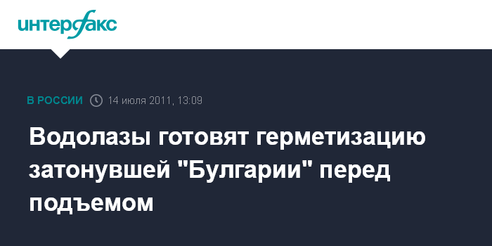 Водолазы готовят герметизацию затонувшей "Булгарии" перед подъемом