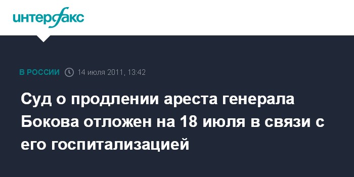 Суд о продлении ареста генерала Бокова отложен на 18 июля в связи с его госпитализацией