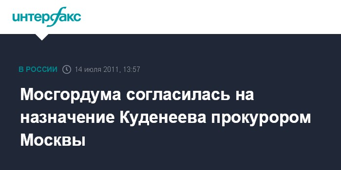 Москва. 14 июля. INTERFAX.RU - На внеочередном заседании Мосгордумы в четверг депутаты Мосгордумы единогласно приняли постановление о согласовании кандидатуры начальника управления Генпрокуратуры по надзору за законностью исполнения уголовных наказаний Сергея Куденеева на пост нового прокурора Москвы.