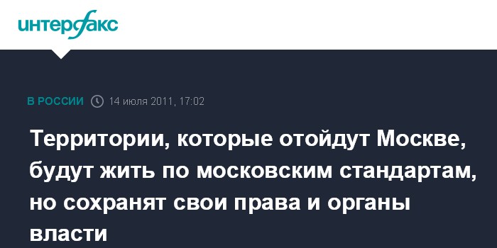 Территории, которые отойдут Москве, будут жить по московским стандартам, но сохранят свои права и органы власти