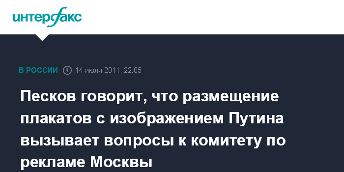 "Безусловно, мы выясним у властей Москвы, каким образом подобные плакаты появляются. Комитет по рекламе должен обращать на это внимание, но пока не обращает", - сказал Д.Песков. Он добавил, что не знает, кто автор этих плакатов.
