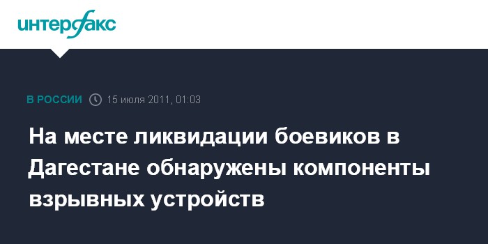 Махачкала. 15 июля. ИНТЕРФАКС-ЮГ - Следователи обнаружили на месте ликвидации вооруженного сопротивления на окраине Махачкалы (Дагестан) троих предполагаемых боевиков найдены компоненты взрывных устройств, сообщили "Интерфаксу" в СУ СКР по республике.