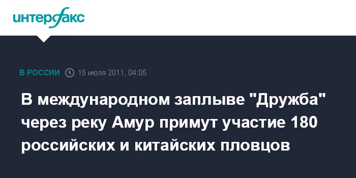 Благовещенск. 15 июля. ИНТЕРФАКС-ДАЛЬНИЙ ВОСТОК - В Амурской области в воскресенье, 17 июля, состоится традиционный международный заплыв "Дружба" через реку Амур, сообщила пресс-служба правительства региона в пятницу.