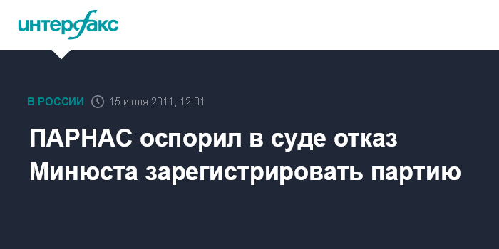 В поданном в суд заявлении говорится, что решение Минюста об отказе в регистрации ПАРНАСа "является незаконным и необоснованным" и "нарушает права политической партии, а также права ее членов на объединение, закрепленное статьей 30 Конституции РФ и статьей 11 Европейской конвенции о защите прав человека и основных свобод, и право на участие в выборах, закрепленное пунктом 2 статьи 32 Конституции РФ, так как только политические партии в РФ могут являться избирательными объединениями на выборах в органы государственной власти".